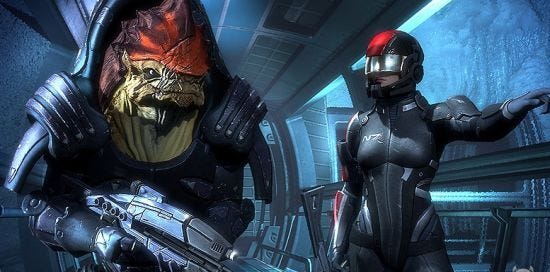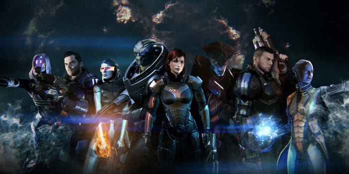 A similar idea is put into effect (heh) in the Mass Effect trilogy. The selection of characters who are actually aboard the Normandy and available for missions varies over the trilogy, but those characters are still in the world when they exit the team, so they're given some time out of the spotlight to pursue their own goals. This can be jarring at times, such as Liara's 180 degree turn from naive and curious to stone-cold bureaucrat, but other times it means characters are given a chance to grow and be their own heroes, like Jack's turn from "vengeful psychopath" to a mentor-like figure. Other characters, whose identities and arcs are strongly rooted in the culture they come from, like Wrex, Grunt, and Legion, are given a chance to reintegrate with those cultures and be changed by them, or to change them. This could never happen if these characters were permanently aboard the Normandy, just playing ping pong between missions.