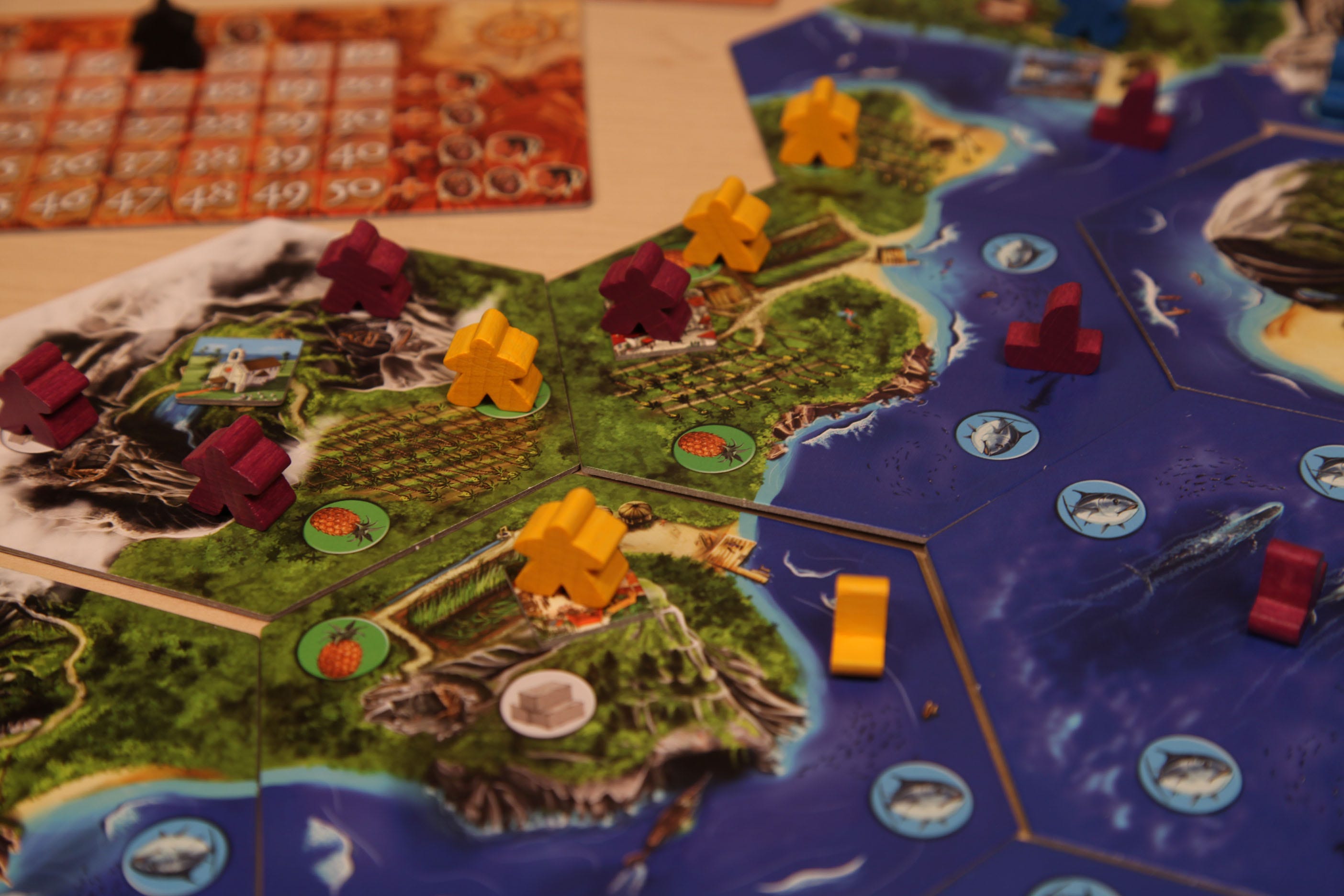 While I love this game to death, I positively dread having to teach it to a table of new players every time. Archipelago is a banner holder for centralized complexity. The most complex parts of the game, the parts from which the strategy and interesting mechanical interaction arise most of the time, are the fundamental actions taken over the course of the game. Buying and selling on the foreign and domestic markets, moving your characters, harvesting resources, bartering with your fellow players, and dealing with worker insurrection are all essential to the game; every player will perform all of those actions every game of Archipelago. For a player to understand the game at a base level, they have to understand all of these actions, that that leads to a pretty big wall that players have to surmount in order to start meaningfully playing.