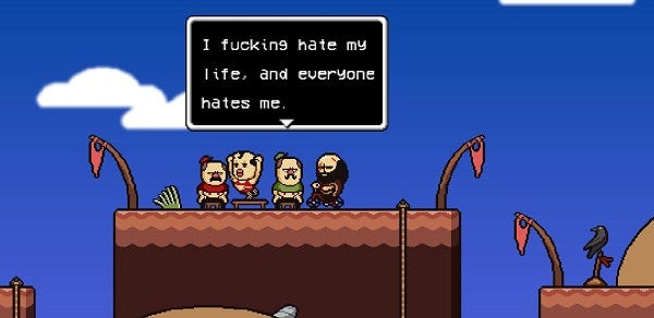 The funny thing is, if you search this blog for LISA: The Painful, you'll find my review of it, one of the first things I posted here, which is actually a bit lukewarm. However, as the years go on and "quirky JRPG-inspired surrealist indie game" becomes a genre unto itself with classics like Undertale, Anodyne, and Barkley: Shut Up and Jam Gaiden, I constantly think about how good the good parts of LISA are.