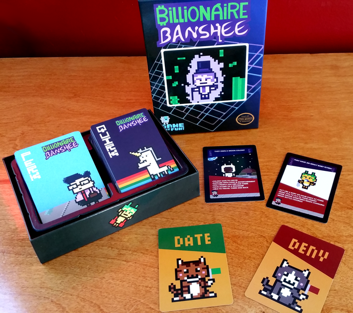 Billionaire Banshee was the other party card game I bought at PAX, after a simply amazing pitch given to me by the game's designer, Steven Bailey (who signed my box!).