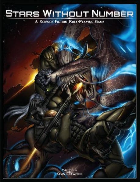 Just, take it from me, Stars Without Number is an essential tool for any big sci-fi game, and arguably is a useful resource for people running, really, any game. But, hey, you don't have to take my word for it: the core book is free.